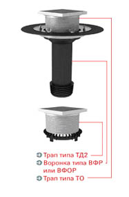 Комплектация воронок типов ВФР и ВФОР трапом позволяет применять их при ремонте или создании новых кровель в эксплуатируемых вариантах. Воронки водосточные и трапы изготовлены из материала, аналогичного материалу кровельных воронок типов ВФ и ВФО. Благодаря этому изделия устойчивы к атмосферным воздействиям, а также к воздействию стоков, содержащих моюще-чистящие средства.