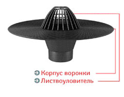 Кровельные воронки с листвоуловителем обеспечивают беспрепятственное удаление влаги с поверхности кровельного ковра, предотвращая застой воды на гидроизоляционном покрытии. Такие воронки пригодны для применения с гидроизоляционными материалами на основе модифицированного битума. Воронки изготовлены из высокопрочного материала, устойчивого к атмосферному воздействию, а также ультрафиолетовому излучению в диапазоне температур от —50 до +80 °С.